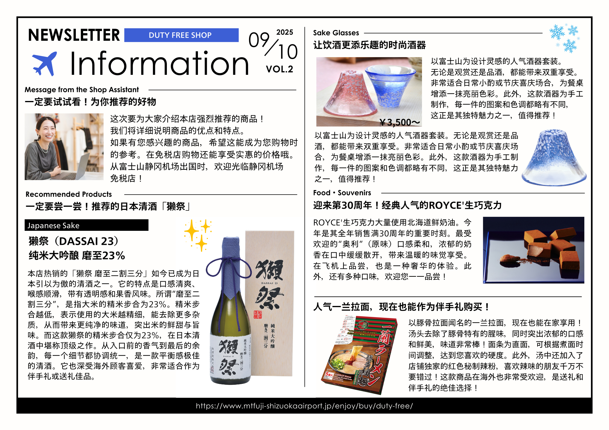 中国語:中文:免税店介绍 お気に入りに登録する [印刷ボタン機能]JavaScript推奨 中国語:店舗紹介 中文:免税店介绍 Store Information 肌肤之钥・资生堂 詳細は画像をクリック👆 Shop List 2楼 国际航班候机室 富士山静岡空港免税店 関連ページ DUTY FREE SHOP TOP NEWS&TOPICS