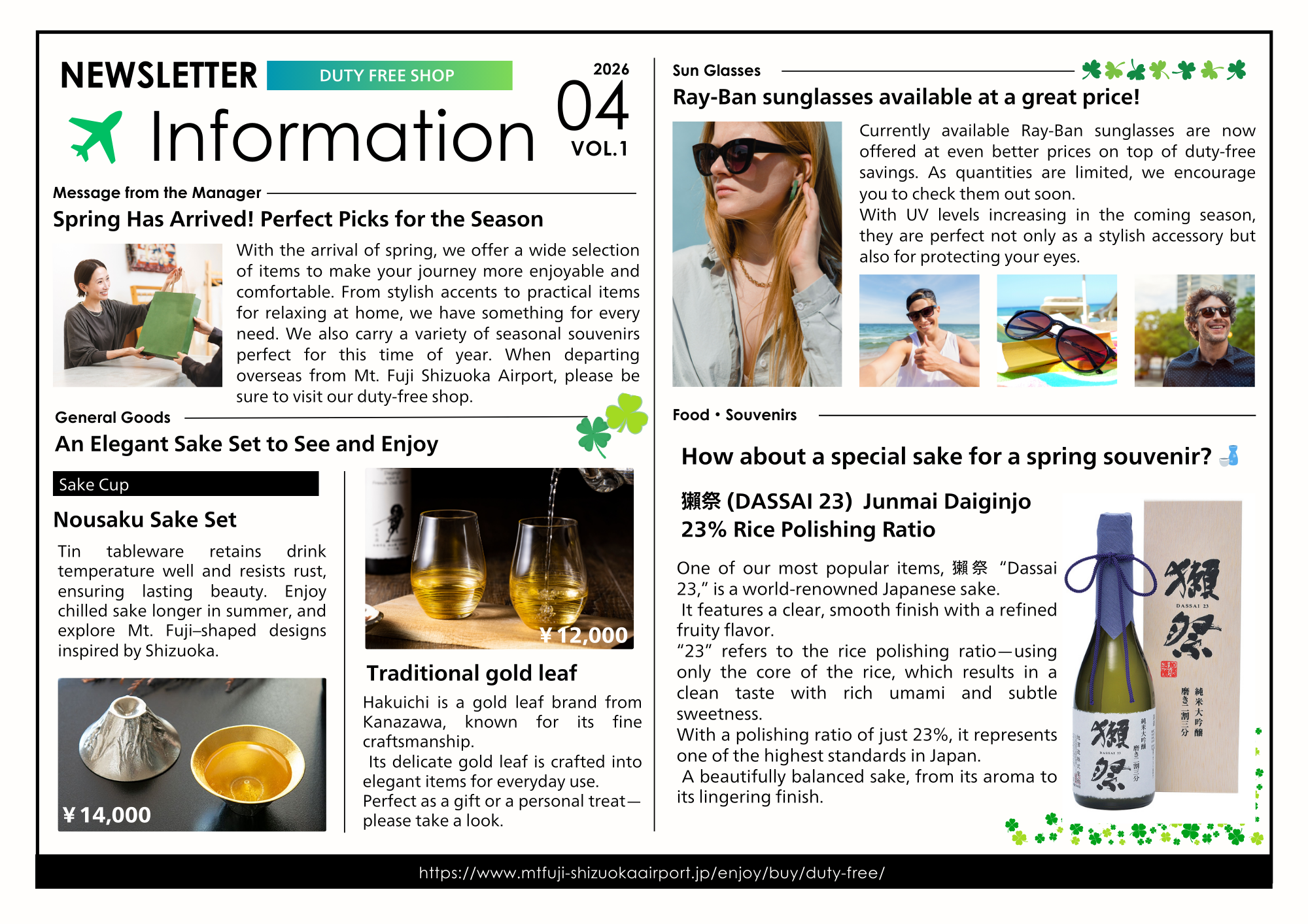 英語:English:Store Information お気に入りに登録する [印刷ボタン機能]JavaScript推奨 Store Information Recommended Products For more details, click the image.👆 富士山静岡空港免税店 関連ページ DUTY FREE SHOP TOP NEWS&TOPICS