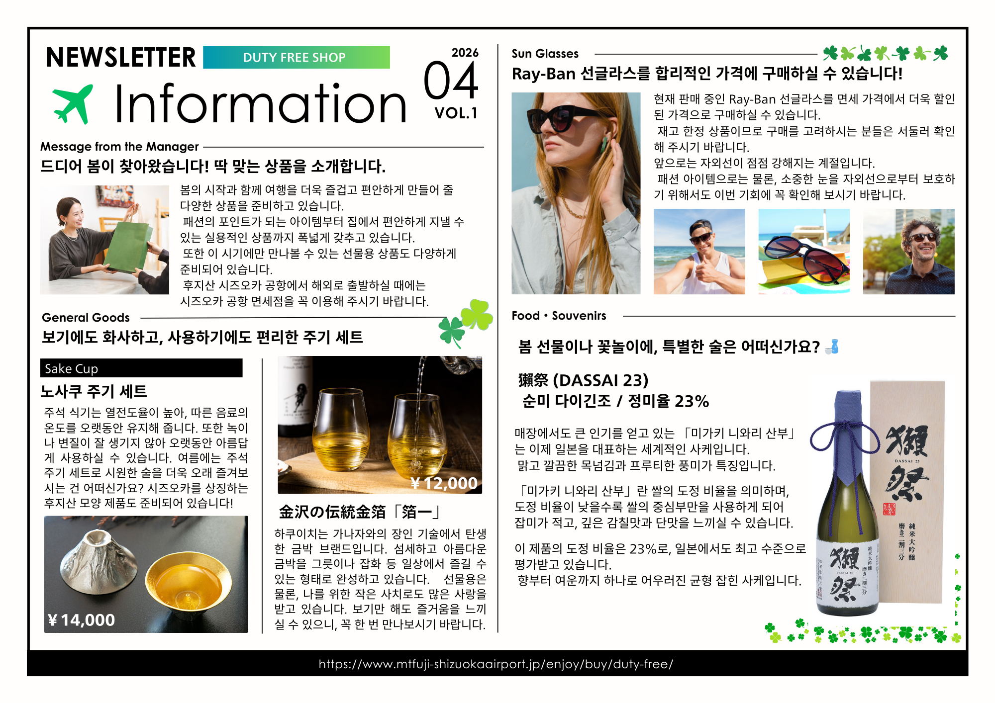 韓国語:한국어:면세점 소개 お気に入りに登録する [印刷ボタン機能]JavaScript推奨 매장 정보 Recomended Product 매장 목록 면세점은 2층 국제선 검사장 지난후에 있습니다. 관광 정보 시즈오카 여행을 떠나 보자!🗻 후지산은 물론 다양한 자연과 이곳에서만 볼 수 있는 특별한 시설들도 가득합니다. 꼭 여행 계획에 참고해 보세요! 자세한 내용은 오른쪽 이미지(사진)를 클릭하세요.👈 富士山静岡空港免税店 関連ページ DUTY FREE SHOP TOP NEWS&TOPICS