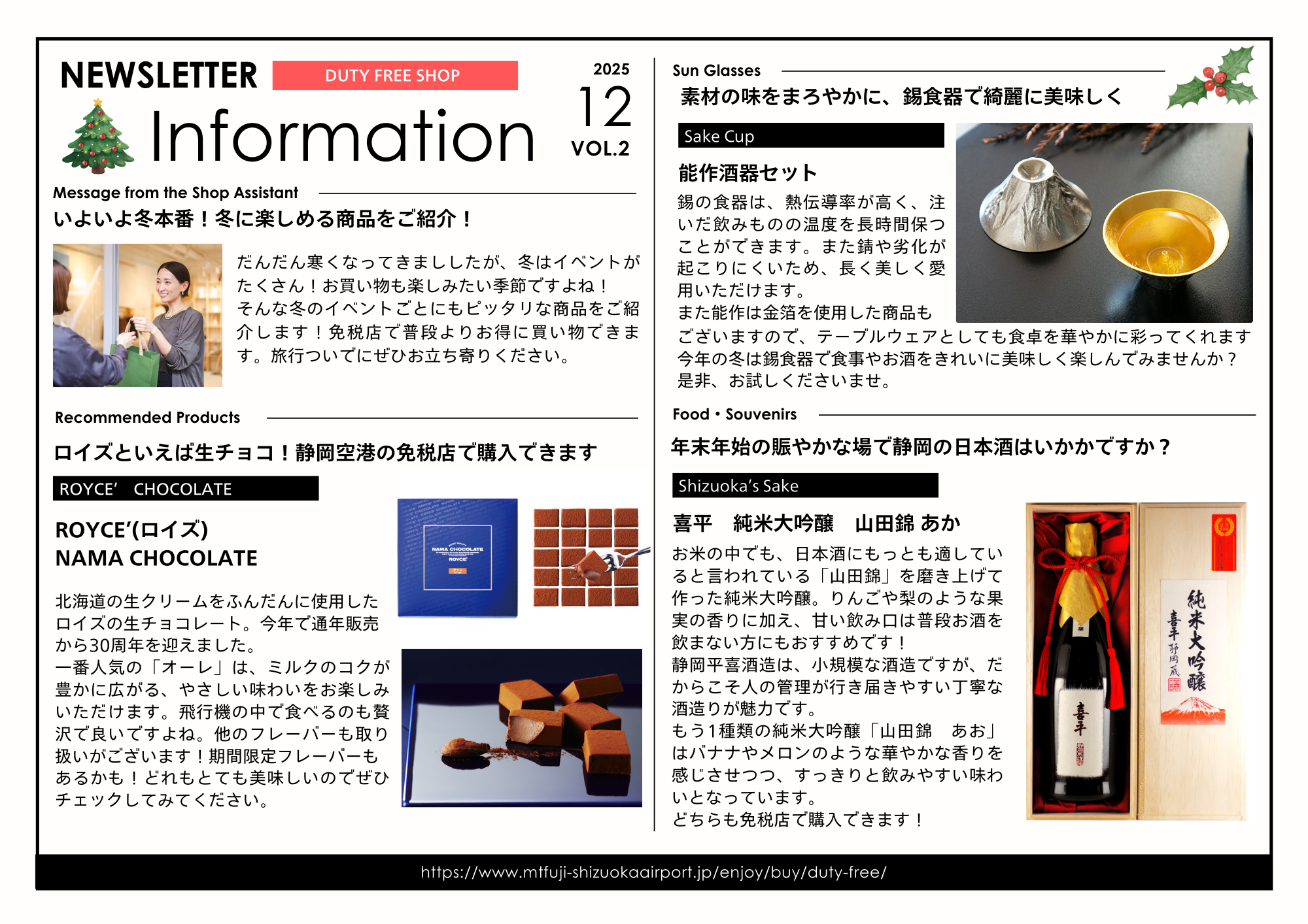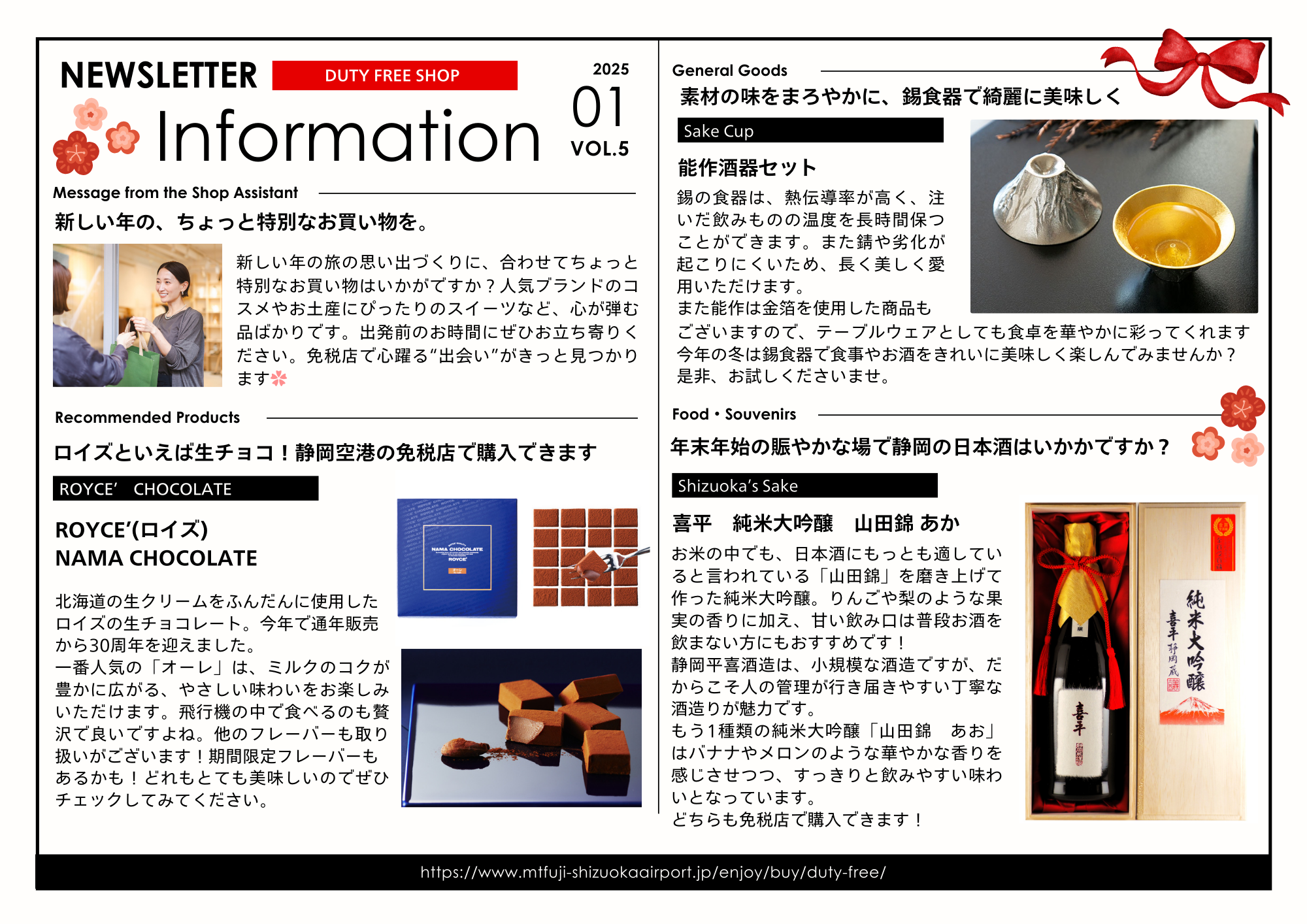 免税品(お酒、煙草、化粧品、有名ブランド菓子等)や静岡土産等を販売しております。ご出発前のショッピングをお楽しみください。