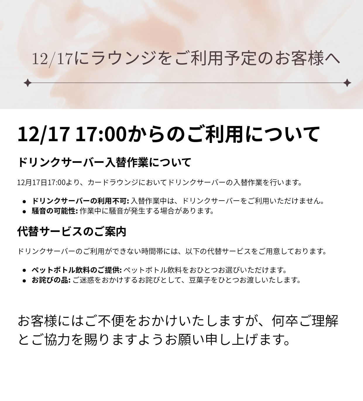 ・ラウンジご利用には実際のクレジットカードが必要になります(スマホ内に登録した電子カードやメモ書きは不可)