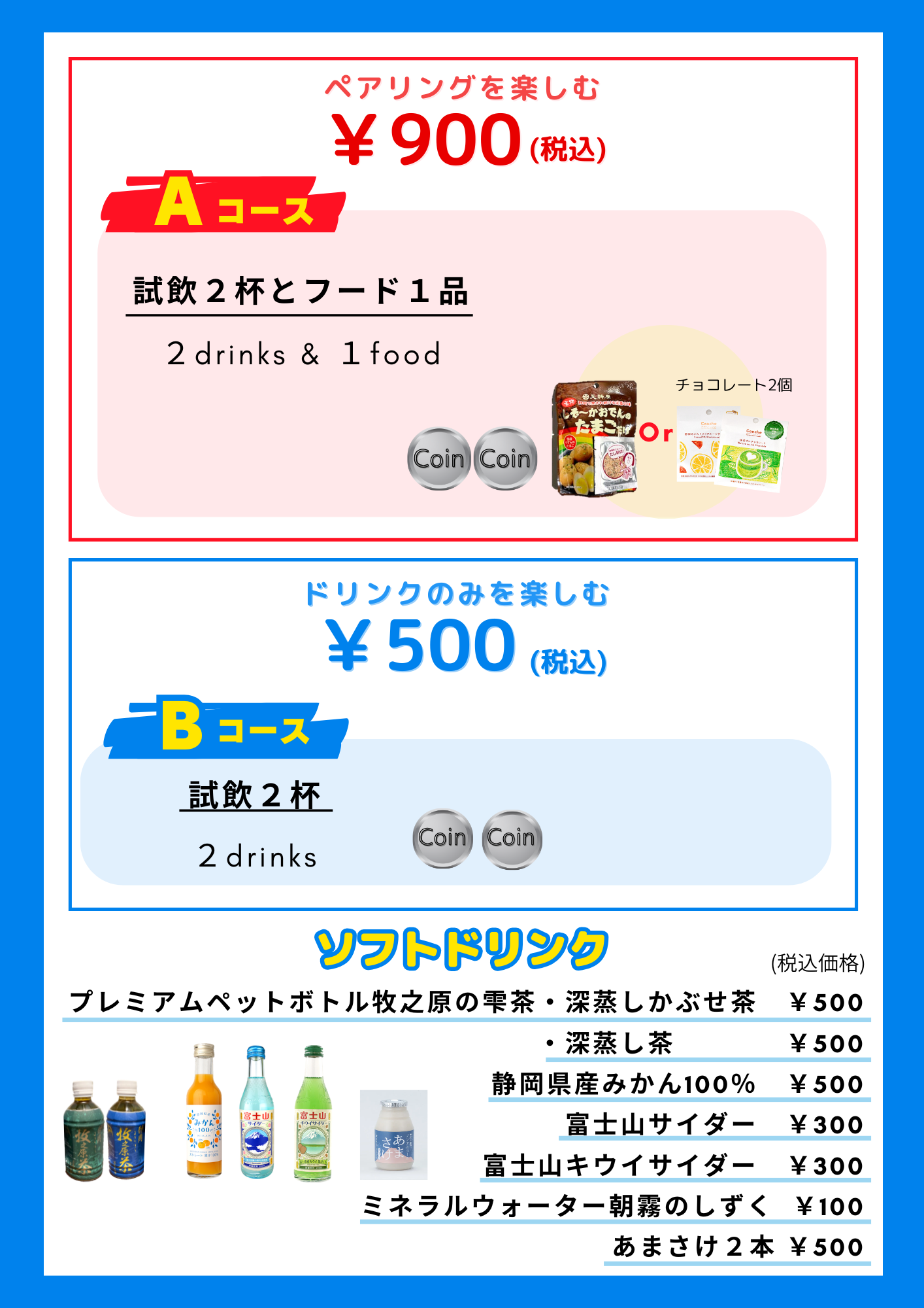 【セット内容】試飲2杯、赤おちょこ1個、オリジナル巾着1枚、抽選会参加券