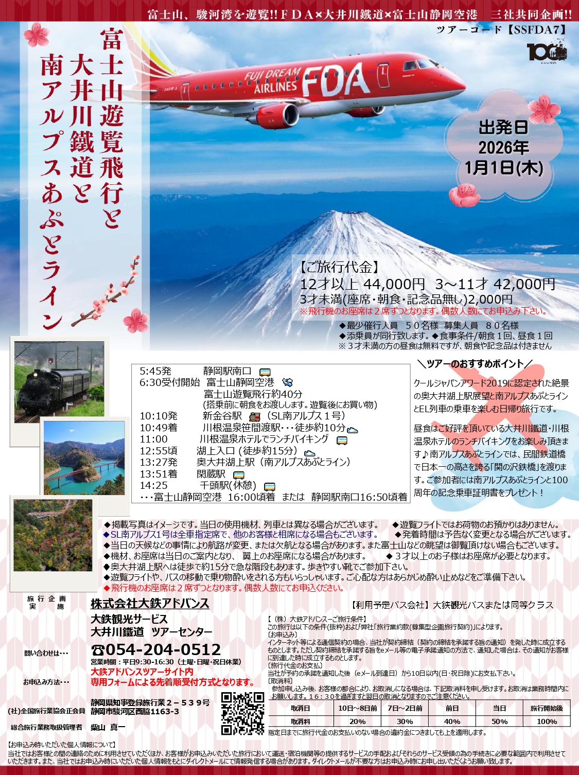 コース名:FDA×大井川鐵道×富士山静岡空港 3社共同企画