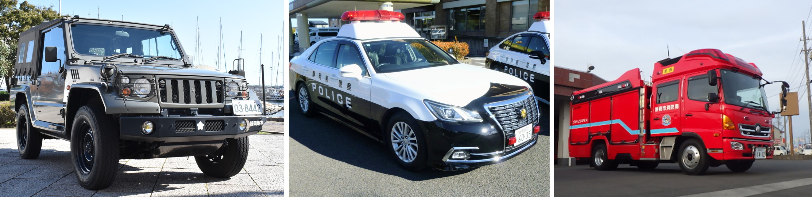 自衛隊のパジェロ、警察の白バイやパトカー消防のはしご車などを見学できます!